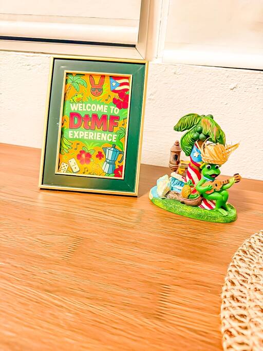 Enjoy a DtMF-themed 2BR/2BA apartment with A/C, Wi-Fi, smart TVs, free parking, and spacious living areas including a full kitchen, dining space and even a dominoes table for laid-back island vibes. Located at the hometown of the Puerto Rican global artist, this stay is conveniently located just a few minutes from Playa Puerto Nuevo, Hwy #2, Wilma Vázquez Hospital, local restaurants, nature spots, and historic sites—perfect for fans, couples, or groups looking for a fun and unforgettable escape.